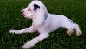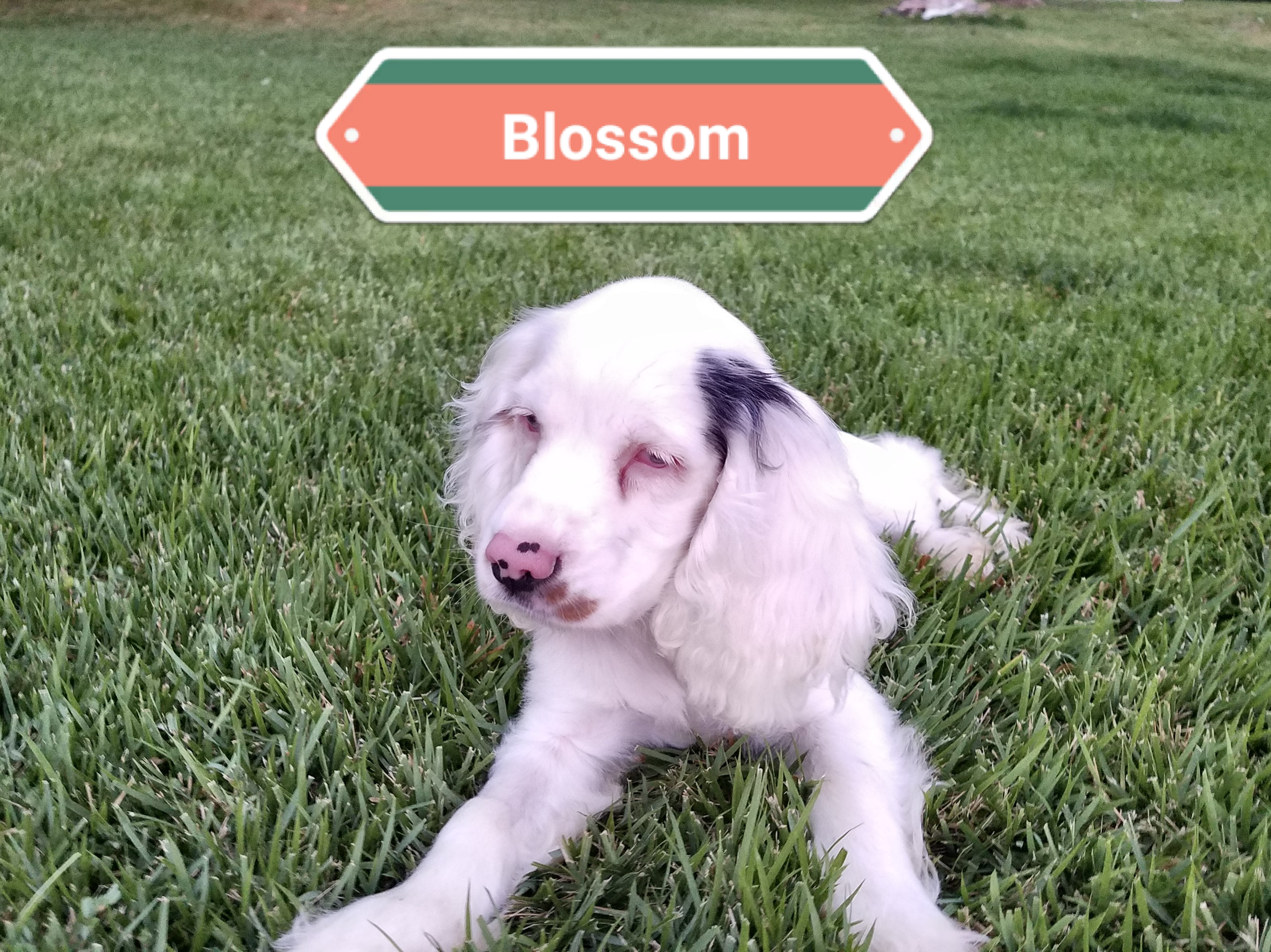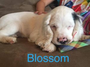 From GDU: Blossom, her brother, and 2 sisters are pure bred Cocker Spaniel pups, who came to GDU from a family who did not realize that their two Cocker Spaniels carried a recessive Merle gene. Four pups out of a litter of 9 were born deaf or deaf and vision impaired. They reached out to GDU to help.