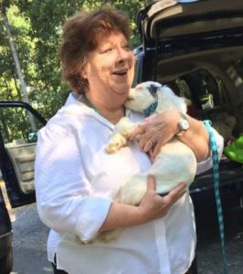 Blossom is Deaf with some vision impairment, though not enough to keep her from running and playing, as most any puppy would! She does a solid “sit” with hand signals and she checks in regularly.