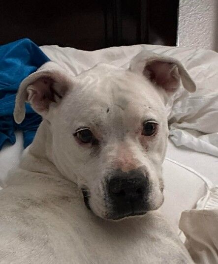 From her rescue advocate: Meet sweet deaf girl Ellie! She was found as a stray. She is micro-chipped, but unfortunately her family does no longer want her. So she was likely dumped. She is 10 years old and deaf. She is dog friendly, kid friendly, leash trained, unsure of cats. She is looking for a new couch to land on whether that be temporarily or forever!