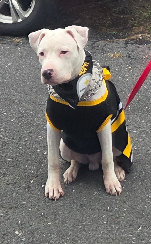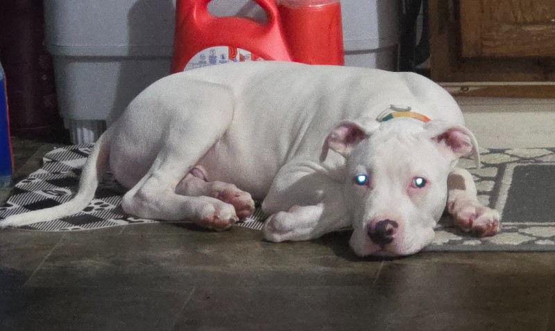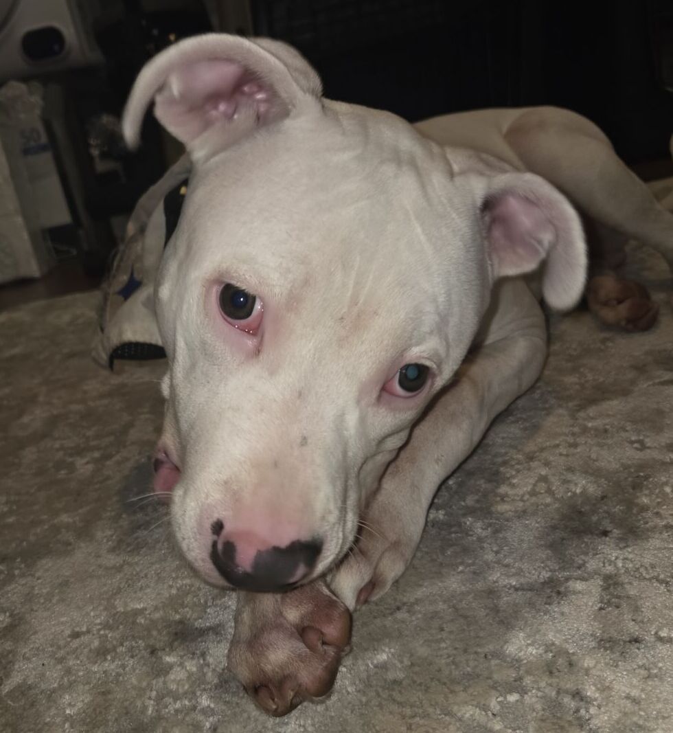 From his current caregiver: This 5 month old pitbull (DOB 6/10/25) is looking for a forever home. He knows all commands, potty trained and crate trained. He loves to play and loves other dogs