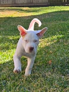 Meet adoptable deaf 12 week old (DOB 10/20/25) bully mix puppy Randy who is looking for a loving forever home where he will be cherished, with someone who will make daily positive reinforcement training/socialization/enrichment a priority and always keep him safe.