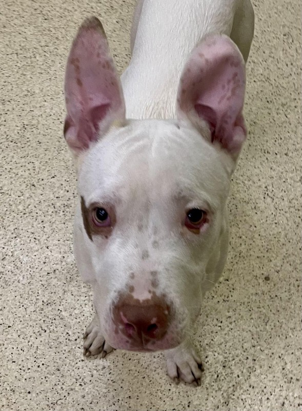 From his shelter advocate: Muncie Animal Care & Services in Muncie, IN has the happiest deaf dog! Sterling arrived at the shelter as a stray in September. He is now neutered, current on vaccines and heartworm negative. Sterling is a 1 yr old, 40 lbs, terrier mix. He does well on a leash, knows sit, is energetic and very sweet. He is good with other dogs and has been off leash playing with several. Sterling is housebroken. He is very affectionate – loves everything and everybody. Sterling is very quiet (not barky) and very smart. Staff is working on hand signals with him. Our adoptions are slow and we would love for Sterling to have a home of his own where he can be happy and continue to work on hand signals.